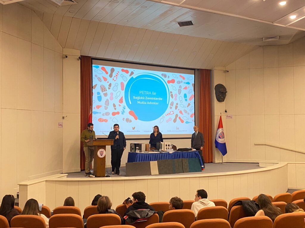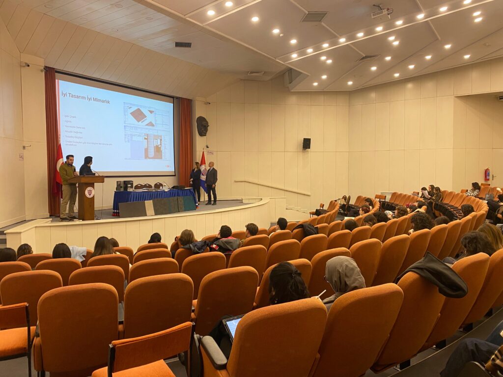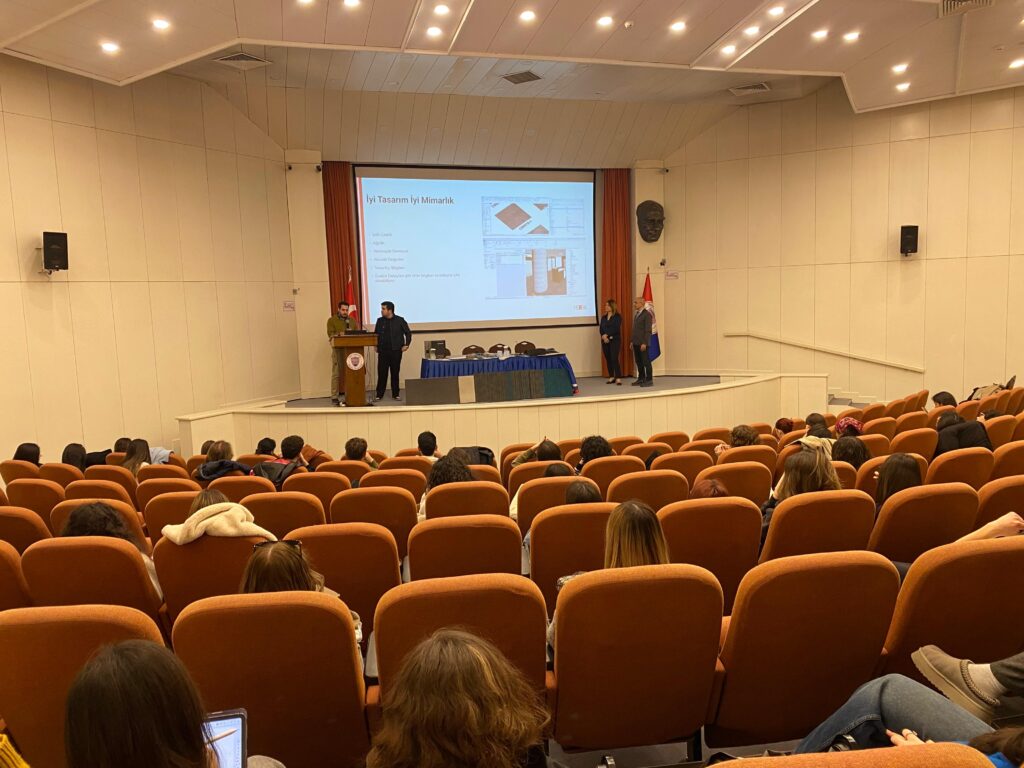 In scope of the annual material seminar series made for IAED 252: Construction and Materials II course, interior architect Asrın Uçar, interior architect Ayça Özger Yalman, Civil Engineer (MBA) Derviş Yıldız, and architect Hüseyin Kağan Öztoklu from Petra the Flooring Co. gave a seminar on the floor finishing materials in Mithat Çoruh Hall on March 5, 2026, Thursday. The seminar is done in two sessions and indicated the possible problems and solutions on interior flooring. We would like to thank Petra the Flooring Co. for the generous support.